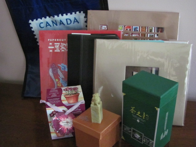 With the finding of the beaters, we are ready to settle in and empty one final box.  The final box is filled with beautiful gifts from our dear Tyndale friends — presents and cards and letters.  A teapot and cups, rice bowls, a memory photo album, a Bible, and the Many Horses autograph stamp and more.  See the pictures of these beautiful items.  Each one is a testimony to the love of friends and colleagues.  We are thankful . . . TLT