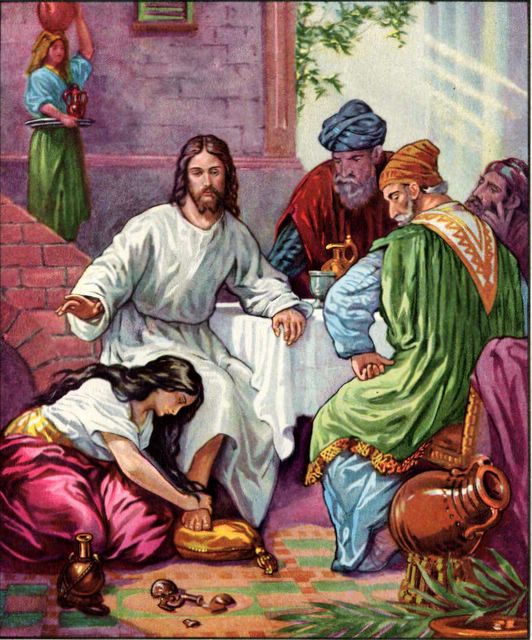 - The sinful woman who comes to the dinner uninvited and weeps over Jesus’ feet and covers them with expensive perfume.